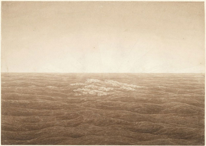 Voor de vier pioniers van de horizon geldt dat de omgang met dit thema je in intiem contact brengt met hun respectievelijke idioom. Corot en Friedrich tonen zich hierin het opmerkelijkst. Friedrich onderscheidt zich in zijn uitbeelding van de drie anderen. Niet enkel tekent zijn horizon zich het scherpst af, ook lijkt ze minder aan de elementen onderhevig. Deze tekening bezit de conditie van een ‘mentaal’ beeld. In de drie overige uitvoeringen wordt iedere toets aan een ander gelijkgesteld. Omdat ieder punt een centrum uitmaakt, kan geen enkel het daadwerkelijk waarmaken. Voor Friedrich ligt dat anders. In zijn tekening behoudt de horizon een essentie. Het beheersbaar perspectivisch middelpunt uit de renaissance blijft in zijn tekening onaangetast. Alleen de dingen die zich naar dit verdwijnpunt schikken zijn weggevallen. Niet alleen anticiperen deze subtiele maar evenwel betekenisvolle verschillen in de tekening uit 1828 op de schilderijen die in de decennia zouden volgen, eerder al voltrokken zich bij hem verkennende bewegingen die deze omslag aankondigden.