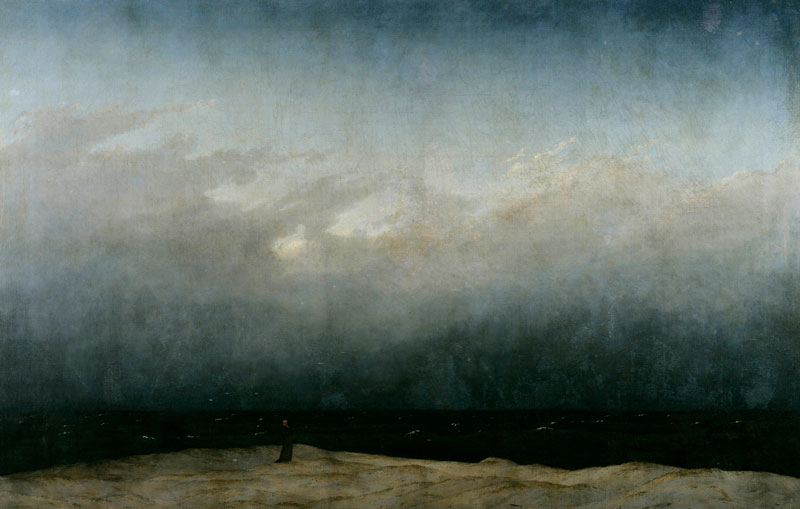 De horizon dwingt tot stellingname. Corot, Turner en Constable kapselen de horizon in binnen particuliere omstandigheden. Feitelijk is de horizon als omgangsvorm niet meer dan een bijproduct van dominantere omgangsvormen binnen hun ruimer oeuvre. Een van de merites van Corot bestaat eruit net omgangsvormen te ontwikkelen die ingaan tegen de hang naar overzicht. Voor geen van de betreffende kunstenaars betekenden hun respectievelijke weergaves van horizon meer dan een eenmalige uitstap. Voor Friedrich ligt dat anders. Naast de voorgeschiedenis die zijn horizon in de jaren 1820 geniet, vormt de uitlevering van de eindige mens aan een oneindige horizon vermoedelijk de spil van zijn romantische poëtica. Deze thematische bestendigheid ontwaar je in ieder van zijn variaties op dit thema die nog zouden volgen – wat kennelijk ook doorwerkt in de weergave aangezien deze de allure van de horizon aanneemt. De wisseling van atmosferische omstandigheden, ’s ochtend, uitziend vanop een berg, werken dit, veeleer dan dit tegen te gaan, verder in de hand.