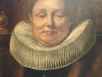Hiernaast zien we een portret van een bejaarde dame, geschilderd door Jacques Jordaens met het geheimzinnige jaartal ‘(.)641’. De voluptueuze kraag past bij de voluptueuze dame. Hier geloof ik dat de kraag speciaal voor haar gemaakt zou kunnen zijn, hoewel er toch weer een tegenstelling werkzaam is. Dit ligt aan het verschil van materie tussen de dame en de kraag. Bij de vlezige dame heeft haar huid de neiging om te gaan hangen, alles zakt door de zwaartekracht naar beneden. Hiertegenover staat de kraag die als een accordeon open lijkt te springen door de lucht die tussen de plooien kan kruipen. Dit trekt elkaar in een goede balans.