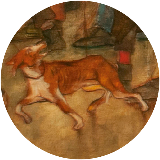 Maar misschien ging het hem ook niet om goedkeuren of afkeuren. Misschien wilde hij een andere reactie teweegbrengen, ons aan het lachen brengen bijvoorbeeld. Dat was in elk geval mijn eerste reactie. De hilariteit van het hele gebeuren kan niet ontkend worden. Het hele gebeuren doet denken aan een soort geschilderde Jambers-documentaire over Antwerpse alcoholici. De geest van “zatte René” lijkt haast voort te leven in dit werk. Tragisch en hilarisch tegelijk. Over de manier van kijken van toen kan ik me natuurlijk niet uitspreken, maar ik kan me wel voorstellen dat men ook dan al met dit werk moet hebben staan grinniken. Pis, kak en dergelijke zijn tijdloze klassiekers als het om humor gaat, dus dat was lachen verzekerd. Maar hoogstwaarschijnlijk zitten er ook subtielere kwinkslagen in het werk die voor ons onleesbaar zijn geworden.