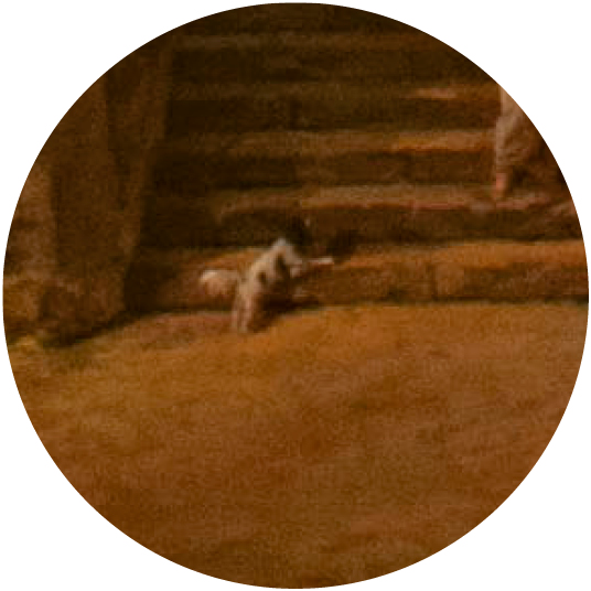 De kotsende man lijkt bijzonder gefocust op iets buiten beeld. Hij lijkt overvallen door een vlaag van gepijnigde woede. Brult hij naar zijn aartsvijand? Of is deze uitdrukking te wijten aan het braken? Ik heb in elk geval nog nooit iemand zien overgeven zonder bezig te zijn met mikken. Tenzij misschien met de ogen troebel of gesloten. Natuurlijk, het kan. Ik vind het echter onwaarschijnlijk.