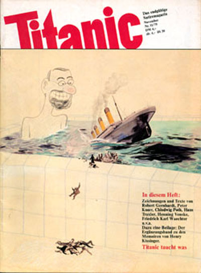 Während diese domestizierte Seemannsromantik für die zunehmend im Wohlstand lebende Bevölkerung positiv konnotiert ist und in der Mitte der bundesrepublikanischen Gesellschaft goutiert wird, werden in den minoritären Subkulturen der 1960er und 1970er Jahre auch Gegenbilder produziert. Alternativkulturen nutzen den Untergang des Passagierschiffs Titanic von 1912 als Bild für die implodierende bzw. katastrophale westliche Kultur des 20. Jahrhunderts. In der sogenannten ‘Neuen Frankfurter Schule’ mit Eckard Henscheid und Robert Gernhardt (die sozusagen als satirischer Nachwuchs der philosophischen ‘Frankfurter Schule’ um Adorno und Horkheimer firmiert) spielt zunächst bei Pardon (ab 1961) und später dann im programmatisch Titanic (ab 1979) getauften ‘endgültigen Satiremagazin’ der Topos der untergegangenen westlichen Aufklärung eine entscheidende Rolle. Unter dem Titel Titanic provoziert das Satiremagazin bis heute immer wieder Skandale: Als indirekter Effekt einer Fake-Bestechungsgeschichte kam die Fußball-WM 2006 tatsächlich nach Deutschland, was einen internationalen Skandal auslöste; die Titanic wurde 2012 (erfolglos) vom Papst Benedikt XVI verklagt; seit 2014 ist sie mit ihrem politischen Arm Die Partei durch ihren ehemaligen Chefredakteur Martin Sonneborn sogar im Europäischen Parlament vertreten.8 Neben dieser programmatischen Nutzung des Titanic-Topos durch das Satire-Magazin hat unter anderem der wichtige Nachkriegsautor Hans Magnus Enzensberger den Topos ins Zentrum seiner ‘Komödie’ Der Untergang der Titanic (1978) gesetzt.9 In der Versepos-Form und in 33 Gesängen reflektiert Enzensberger die Ausgangspunkte und Effekte der Katastrophe, die somit gleichsam zur Gründungsszene einer Kultur wird, die weiterhin um ihr Überleben ringt.