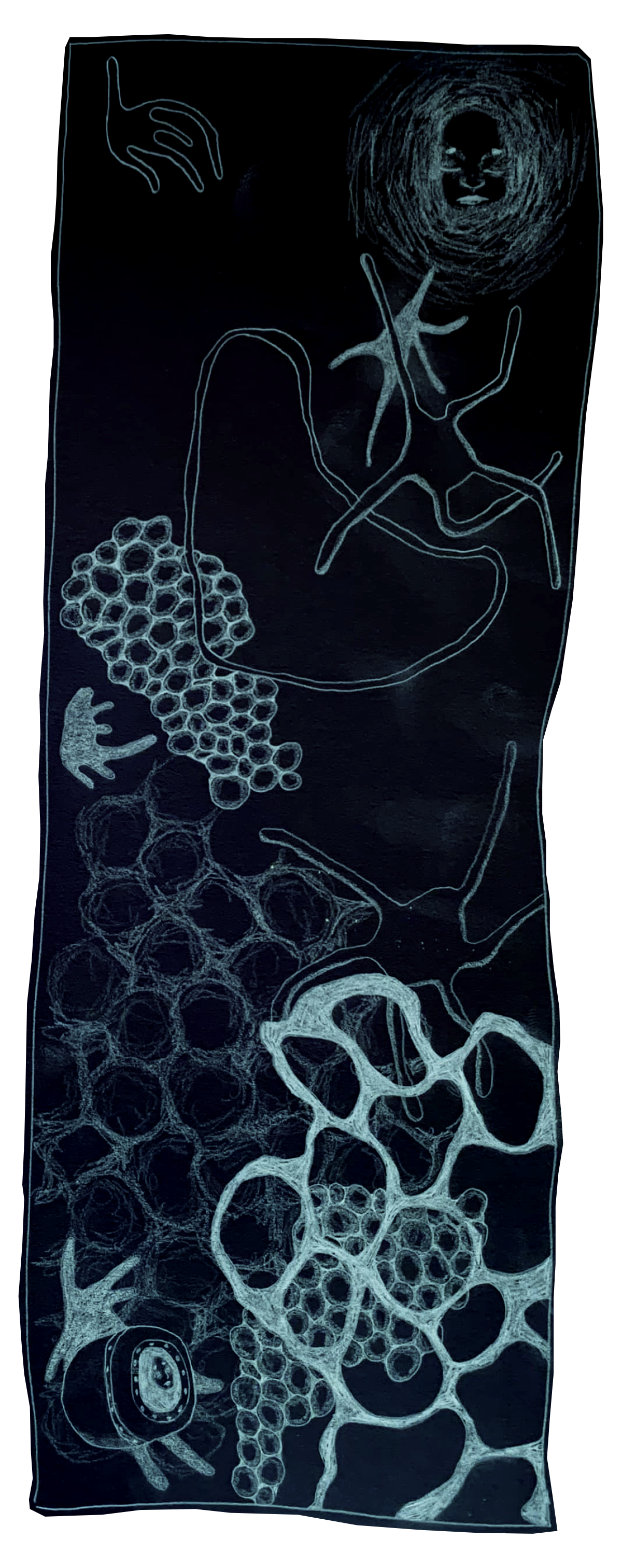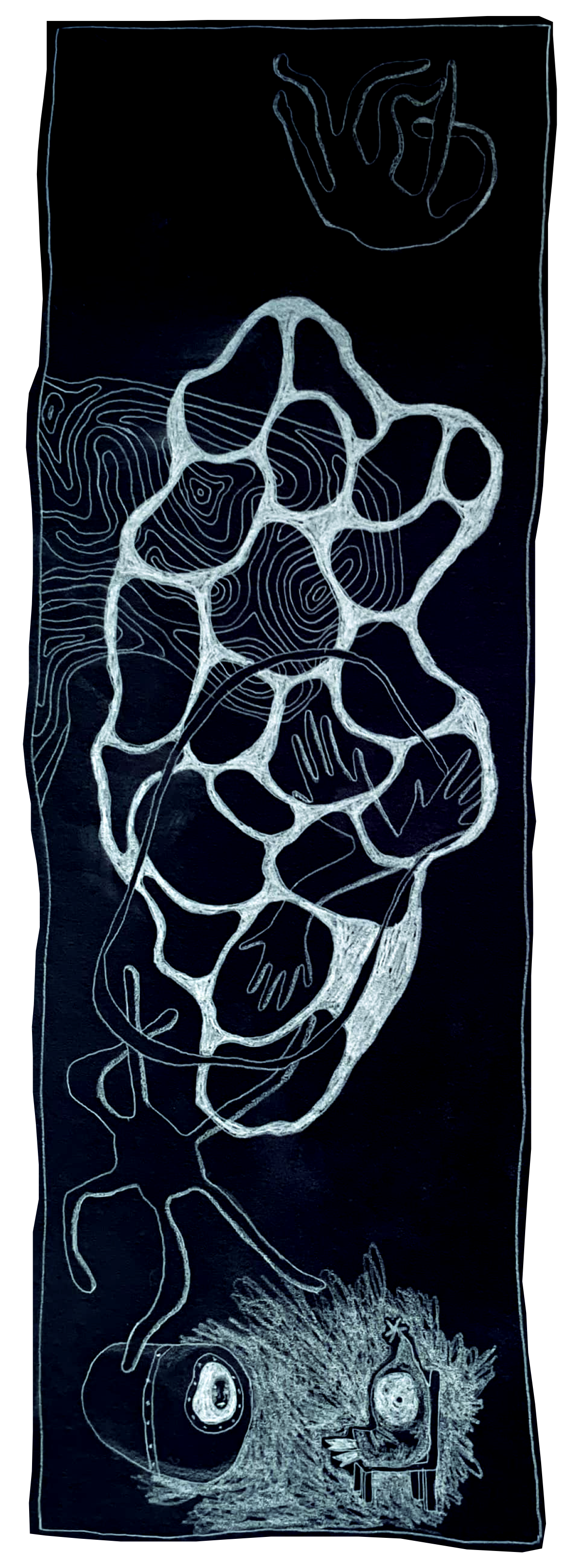 Deze illustratie maakt deel uit van de graphic novel GINO, die in volle voorbereiding is. In die boekpublicatie onderzoekt Mathilde Cominotto methodes en technieken om de (submariene) memoires van haar grootvader, opgesteld in het Nederlands en het Italiaans, om te zetten naar een beeldverhaal.