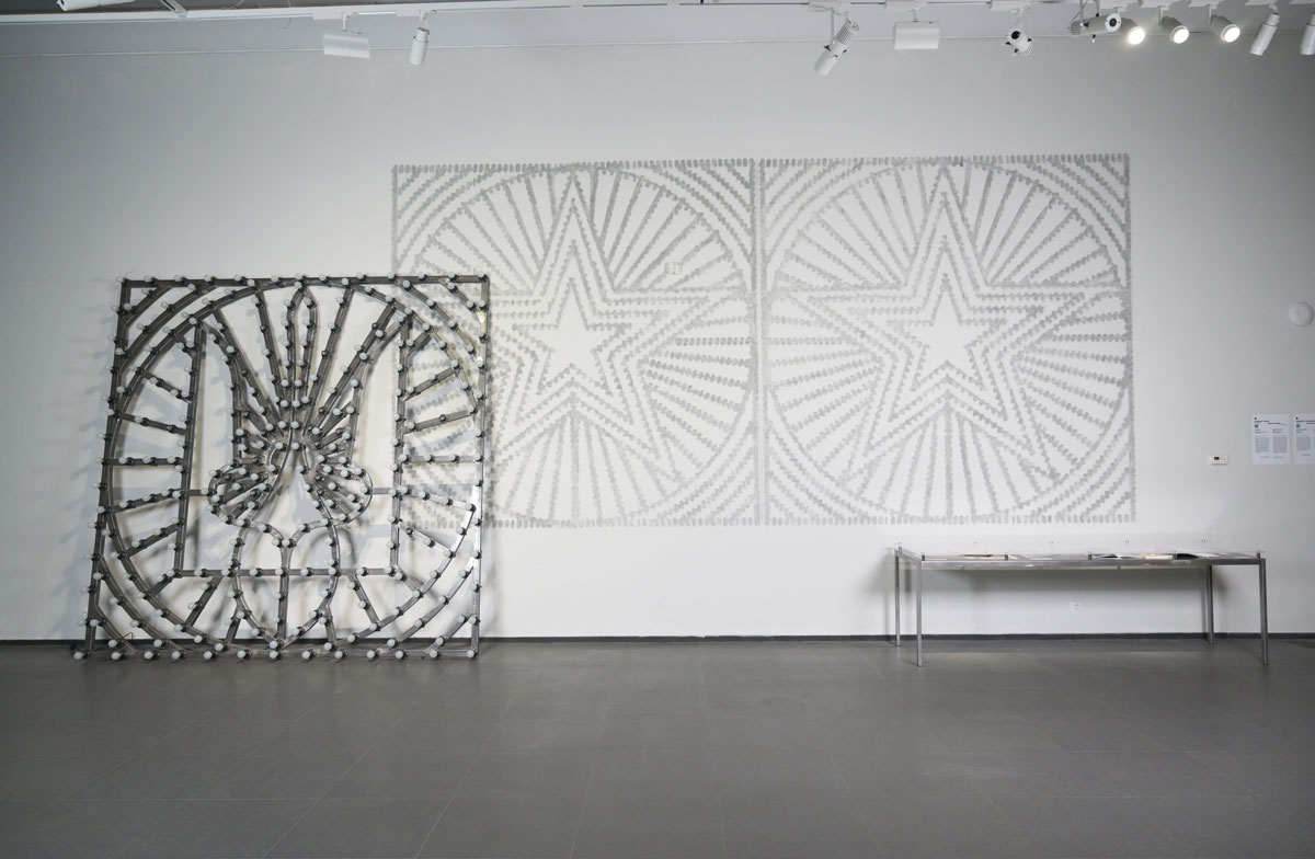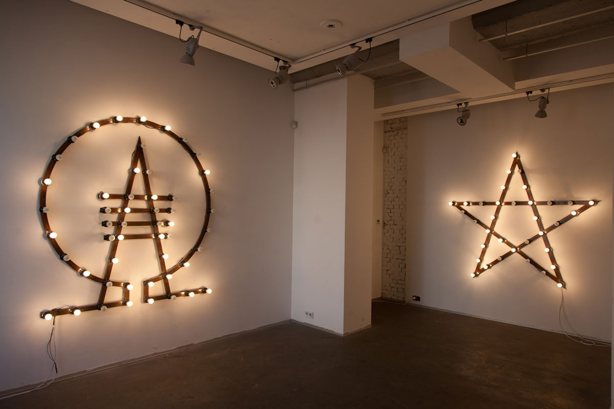 Metal structures, built in a "festive-ideological" style, draw a logo using "Ilyich's light bulbs". This allows us to consider the narrative of the totalitarian regime and the arrival of the new in the form of a “solar eclipse” or “mystical atheism. The Demounting program proposes to fix the internal problems of the system by analyzing triggers and understanding patterns, and not just by externally destroying the existing one”, says the artist.