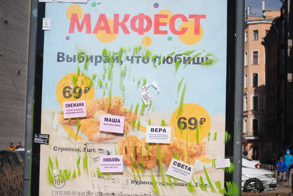 However, some individuals and anti-war communities began to actively invent forms of (decentralized) micro-protest, in addition to graffiti and stickers in urban space (which are, however, quickly painted over or torn off).