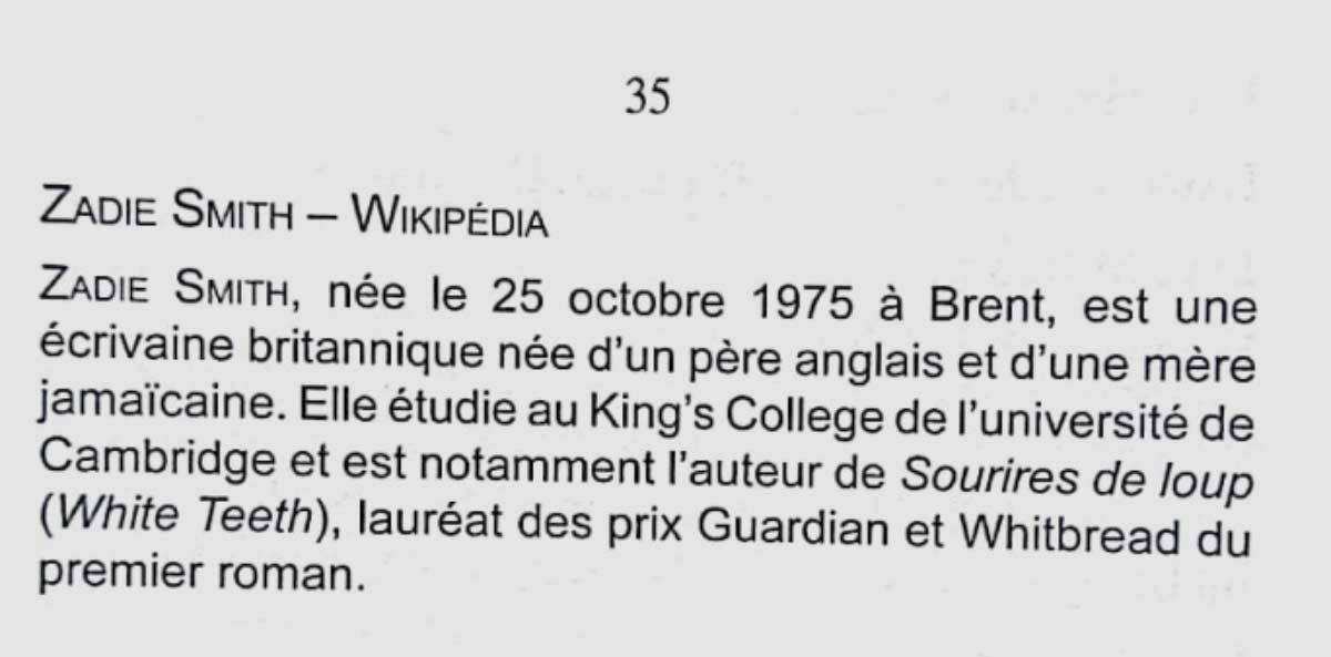 The micro-sequences also reproduce the various web pages (tabs, pop-ups, YouTube videos…) appearing on Ida’s computer screen (some are authentic pages, others are invented by Peyrade). The title of the consulted page is always indicated in small capitals, in the same font as the one used for the text messages. The page content too is transcribed in this font, which is clearly reserved for the sections reproducing the content Ida is watching on her screens. In the case of video or recorded material, the title is followed by the timestamp, and the spoken words are transcribed in the main font of the script, as are the stage directions and dialogues. Here are some examples: