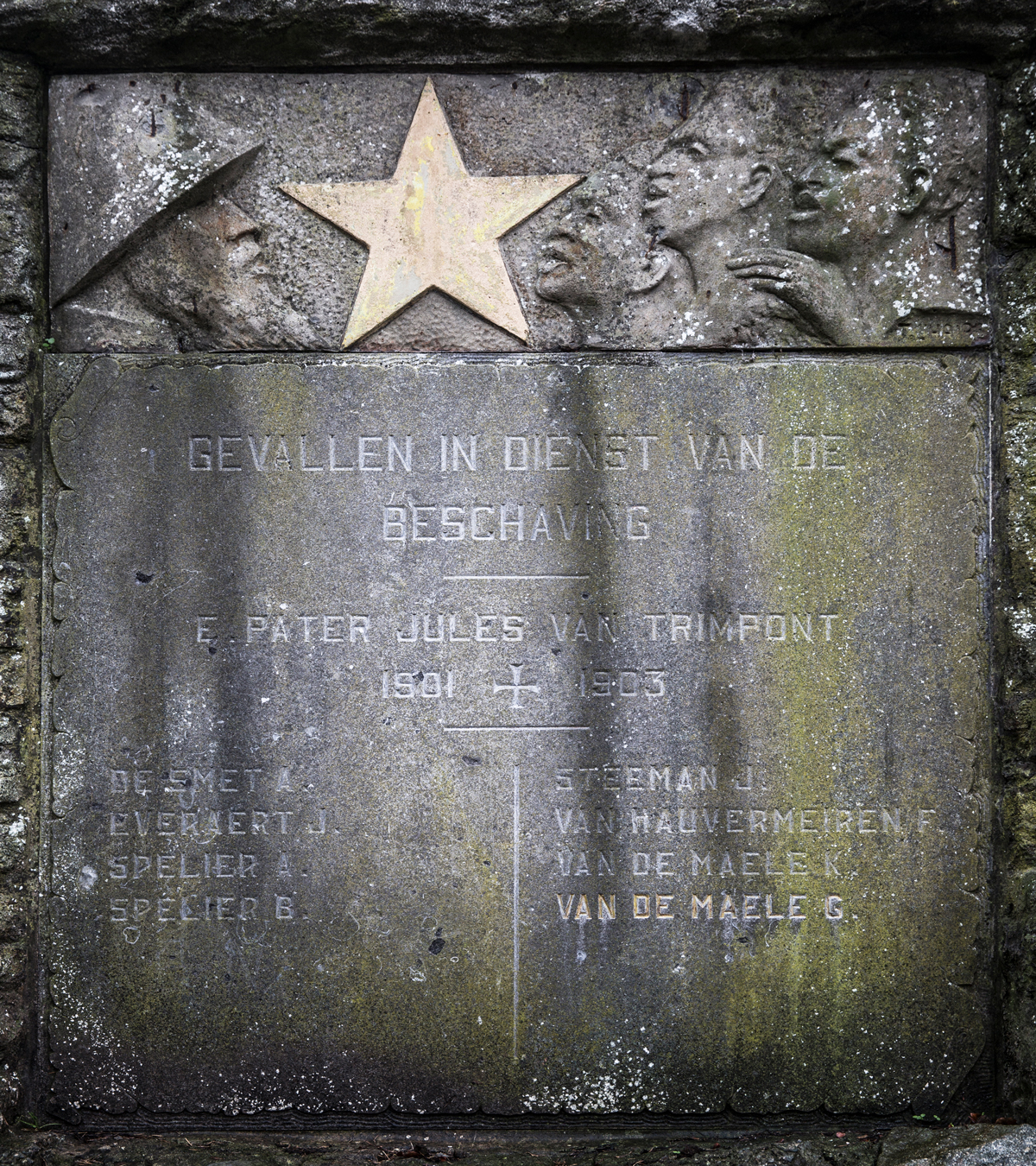 De olifant (the elephant) in Geraardsbergen is a case in point. It was created in 1948-1949 by Théophile L’Haire to commemorate amongst others Belgian military men who lost their lives in the Congo Free State “in the service of civilization" between 1885 and 1908, when control was delegated to the Belgian state. This was a period of almost non-stop war between Leopold II, Congolese and Arabo-Swahili for the control over the country during which many more Congolese than Belgians perished. These monuments have become almost the only testimonies to these wars, as most Belgians now wrongly associate violence in the Congo Free State exclusively with the exploitation of wild rubber. Still, most actions are undertaken in order to remind the public of the violent exploitation of rubber rather than of the wars, which claimed many more Congolese than Belgian lives.