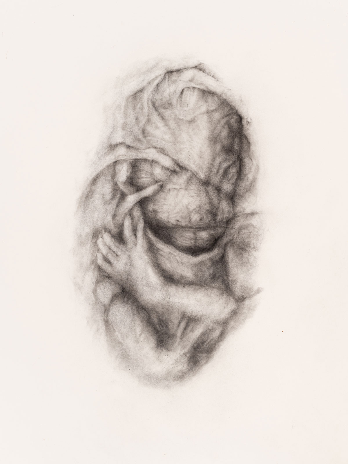 STR(A)Y or stry, Gunter’s most recent exhibition (from 2024), continues her investigation into the bodies and subjectivities of vulnerable animals, often those that are yet unborn. To ‘stry’ in Afrikaans means to argue. So Gunter reminds us that we are all astray, lost to ourselves and each other. But, more importantly, sy stry, she is arguing. She is fighting for the grievability of animals that are on the verge of undoing. She uses what she terms the “dreaded sublime powers of drawing” to “imagine the tragic and real demise of these animals” and our subsequent demise with them (Gunter 2022: 1). Her impressions haunt. These strangers from a strange land, which are the object of her affection, make us think of our own humanity and the ways we use this to erase and deny. But she doesn’t make us paranoid or apathetic. Rather hers is an ethics of care that extends to a care even for the human and refuses to shame even mankind.