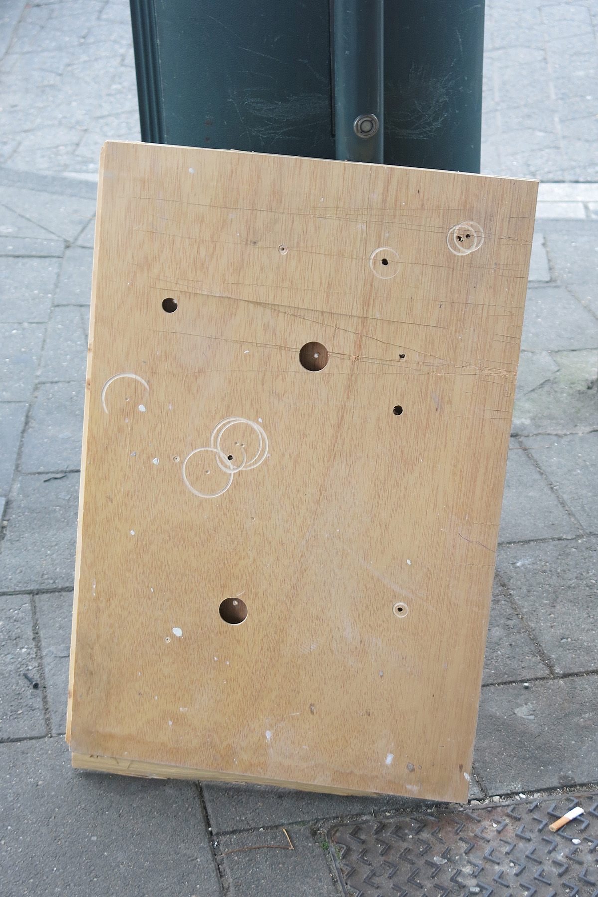 De reeks ‘Dingen met een gat in’ is een reeks dingen met een gat in. Ze is ontstaan vanuit de vraag naar de relatie tussen deel en geheel, vanuit de vraag naar de relatie tussen een beeld en zijn context. Hoe een context betekenis verleent aan een beeld. Hoe een beeld betekenis geeft aan de context. Hoe betekenis verandert, verschuift, verdwijnt, verschijnt. Het onderwerp van de reeks is de reeks zelf. De gemeenschappelijke noemer van haar bestanddelen is volkomen arbitrair, namelijk: dingen met een gat in. De beelden kwamen niet tot stand met de bedoeling op zichzelf te kunnen staan (al wordt de mogelijkheid hiertoe niet uitgesloten). Ze bestaan van bij aanvang slechts bij de gratie van hun verzameling. De benoeming als reeks vormt de legitimatie voor registratie en betekenisgeving. De reeks is inherent aan elk beeld. Zijn de beelden abstract of werkt de repetitie abstraherend? Er is een idee van een reeks als vertrekpunt voor het registreren en verzamelen van beelden. Er is een beeld dat de aanzet vormt voor andere beelden. Er is een ding dat de aanleiding is van andere dingen. Er is een selectie, er is een volgorde. Er kan gezocht worden naar een gemeenschappelijke noemer. Er kan gedacht worden vanuit een gemeenschappelijke noemer. (Dat noemen we dan het ‘onderwerp’ van de reeks.) Misschien is één beeld een anekdote, twee beelden een relatie, drie beelden een verhaal. Marcel Duchamp: “Eén is eenheid, twee is het dubbele, de dualiteit, en drie is de rest. Of je nu drie of drie miljoen zegt, dat is hetzelfde.” Voorwaarde voor het maken van de beelden was er niet naar op zoek te gaan (wat aanvankelijk beter lukte dan naderhand). Maar ook: de idee (de reeks) stuurt de blik. De blik herkent het beeld. De blik herkent zichzelf. De wereld neemt de vorm aan van de blik, en van de idee. De benoeming als reeks leidt tot categorisering: telkens mijn blik op een ding met een gat valt, herkent het dit als een ding met een gat (dat was tevoren niet het geval). Maar niet altijd: niet alle dingen met gaten dringen mijn bewustzijn binnen. Evenmin blijven alle dingen met gaten hangen in mijn geheugen (met gaten). Wanneer ik minder aan de reeks denk, zie ik minder dingen met een gat in, zie ik de dingen met een gat in minder. De beelden zouden evengoed iets anders kunnen voorstellen. De kwaliteit ervan was van ondergeschikt belang (het gaat immers over de dingen). Gaat het over de dingen? Er zijn de dingen. Er zijn de gaten. Er is wat het ding omgeeft. En wat zich achter het ding bevindt. Er is wat doorheen het gat te zien is. De omgeving begrenst de dingen. De dingen begrenzen de gaten. De gaten begrenzen de omgeving. De dingen benemen ons het zicht. De gaten zijn perforaties in de dingen die ons het zicht ontnemen. De gaten zijn niet zo leeg als ze eruitzien. En er is de voorgrond. En er is de achtergrond. Coleridge: “The common end of all narrative, nay of all Poems, is to convert a series into a Whole: To make those events, which in real or imagined History move on in a strait Line, assume to our Understandings a circular motion – the snake with its Tail in its Mouth.” Peter Ablinger: “The work is always meant to occur as a selection from the whole. At present I like to write works where the whole should not be presented at once. The whole should remain the whole, and what we hear is just part of it.” Roland Barthes: “Dans un premier temps, la Photographie, pour surprendre, photographie le notable; mais bientôt, par un renversement connu, elle décrète notable ce qu’elle photographie.”