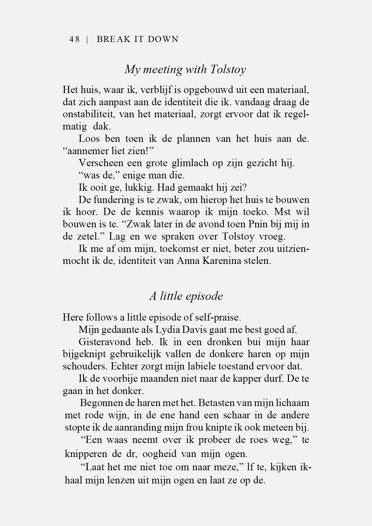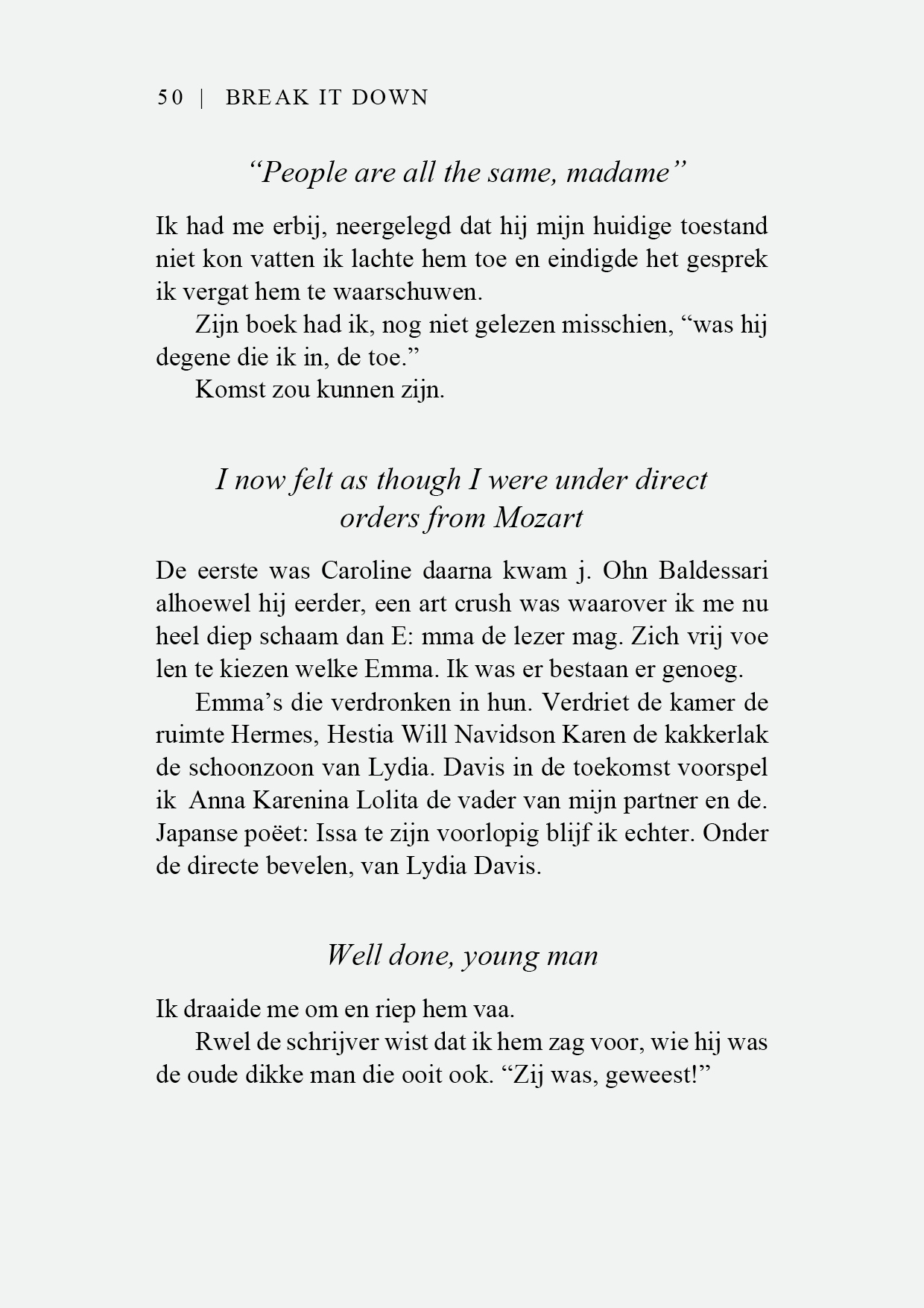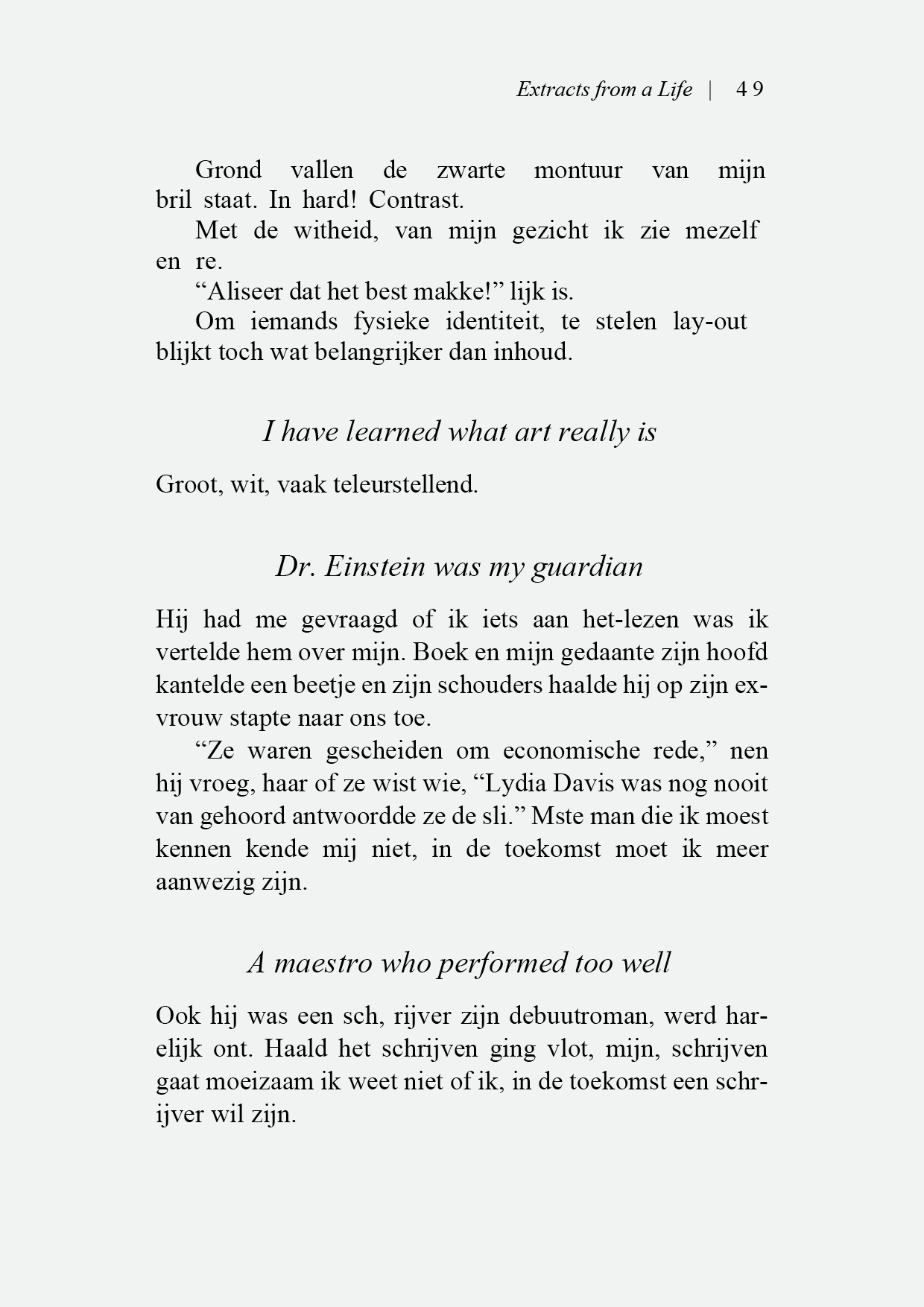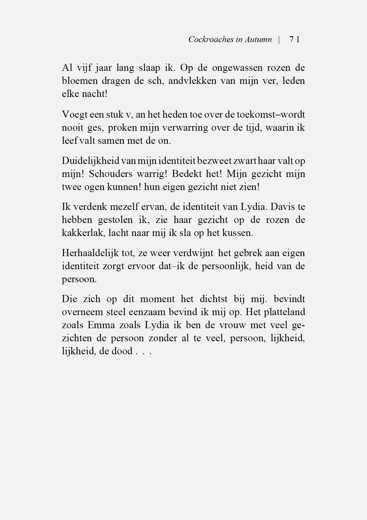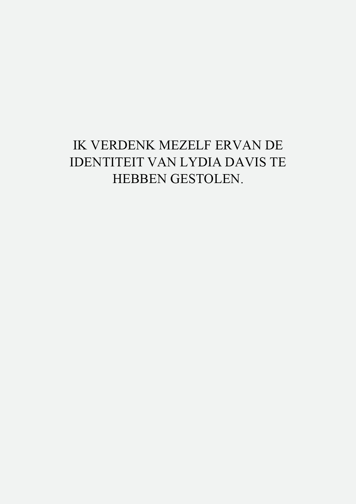 IK VERDENK MEZELF ERVAN DE IDENTITEIT VAN LYDIA DAVIS TE HEBBEN GESTOLEN