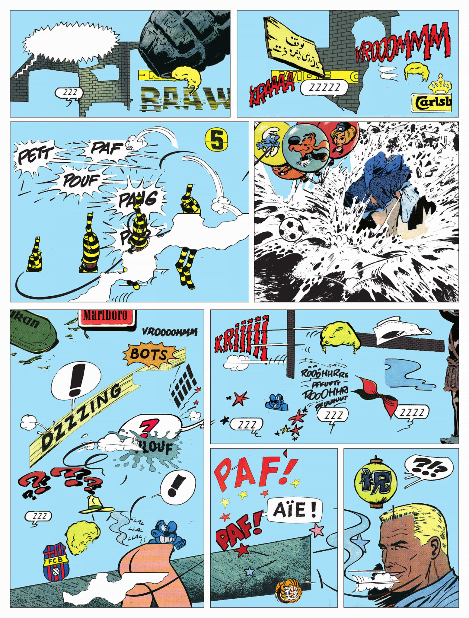 Does Ilan Manouach imply then that comics aren’t ‘contemporary’ yet? Of course not. From technical strips to merchandise, franchises, online fan fiction and so on, the vast world of comics, manga, bandes dessinées, fumetti and tebeos is an integral part of the actual cultural panorama. Then, does Manouach mean that comics aren’t a contemporary art object yet? Even less so, since he doesn’t try to turn comics into art: as I just stressed, they already are inherently artistic in many ways. Of course, for an uninitiated reader Manouach’s conceptual comics might look very ‘arty’. But doesn’t this equally apply to former innovators such as Winsor McCay or Martin Vaughn-James in their days? Every time an explicit novelty pops up in comics world, it creates a fuzz and sometimes even estrangement. It is with this often subtle alienation by an object that initially looks friendly and recognizable but is in fact strongly different at the same time, displaced even, that Manouach operates within comics, returning to us a familiar object as uncanny (as out of place, as no longer homely and familiar). One of Manouach’s early conceptual comics is exemplary of this process: Riki Fermier (2015) is an estranging reappropriation of Rasmus Klump, a 1950s Danish comic books series for children. Leaving out all the characters except Riki the Pelican confronts the reader not only with an odd, depopulated fiction world but with the eeriness of the comics object itself, with its soft and plain colors, its silly story lines, weird dialogues, and strange balloons... The same goes for Noirs, that came out the same year: here, Manouach republished an album of the classic Franco-Belgian Smurfs series, rendering it in CCCC (four layers of cyan ink) instead of the usual CMYK (four color print), confronting us with a partly unreadable yet recognizable, almost arty object; a remnant of comics for sure, an artist’s book also. These two examples show how revisiting old, conventional comics and productively estranging our view of them can produce new objects. But comics production worldwide is extremely varied in the first place, way more diverse than presented in typical charts and festivals (such as Angoulême’s for instance). It is exactly because ‘comics’ are more multifarious than ever before, and hence ungraspable, that Manouach expresses the need to affirm them as a ‘contemporary object’. As he repeatedly stresses in Estranging Comics, comics can no longer be understood as one medium or one language or one art. They can no longer solely be studied and thus conceived through one lens alone, whether it be a literary, mediological or historical lens. Instead, they must be reflected upon as well as produced by the temporary, never totalized intersections of different and even conflicting practices, paradigms, and methodologies.